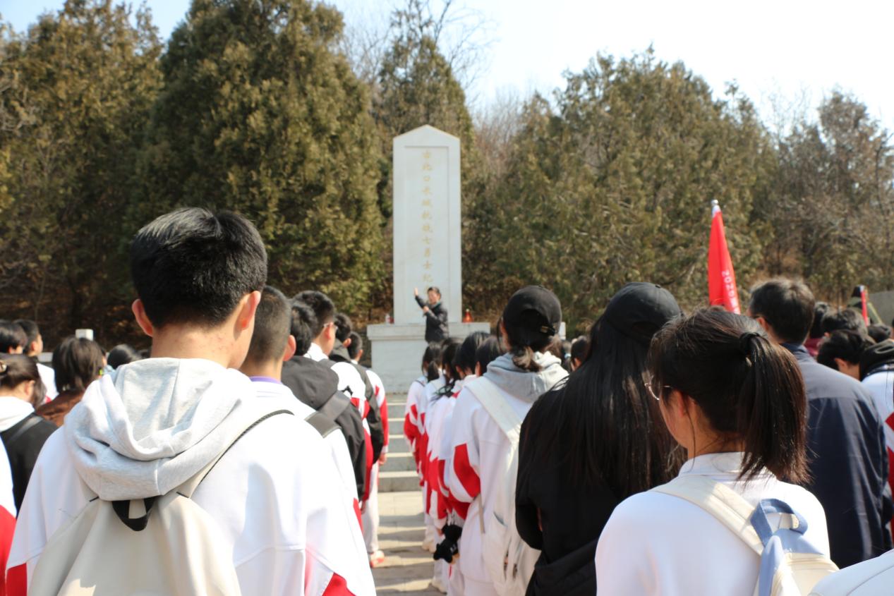 从长城下山后,师生步行至七勇士纪念碑,聆听七位抗战英雄以血肉之躯守护家国的事迹。同学们驻足碑前静默致敬,深刻感悟“和平来之不易”,进一步坚定“以奋斗护家国、以拼搏成梦想”的信念。